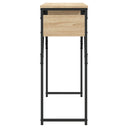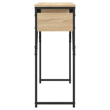 Ajoutez une touche d'élégance à votre entrée, salon ou couloir avec cette table console élégante. Matériau durable : le bois d'ingénierie est d'une qualité exceptionnelle avec une surface lisse et présente également résistance, stabilité et résistance à l'humidité. Fabriqué en bois d’ingénierie, le bout de canapé est facile à nettoyer.Beaucoup d'espace de rangement : la table d'entrée offre un grand espace de rangement pour garder vos magazines, livres, objets décoratifs et autres objets indispensables au quotidien bien organisés et à portée de main.Pieds réglables : les pieds réglables avec des bouchons en plastique maintiennent la table de couloir en équilibre sur un sol inégal et augmentent sa stabilité.Cadre en métal : le cadre en métal ajoute un style industriel à votre intérieur tout en assurant la durabilité et la stabilité. Attention :Pour éviter qu'il ne soit renversé, ce produit doit être utilisé avec le dispositif de fixation au mur fourni.