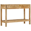 Introduisez un air de charme rustique à votre intérieur avec cette console en bois ! Bois de manguier massif : le bois de manguier massif est un bois dur tropical solide qui fait des meubles robustes. Ses beaux grains de bois rendent chaque meuble légèrement différent l'un de l'autre.Grand espace de rangement : dotée de 2 tiroirs et d'une étagère, la table d'entrée offre suffisamment d'espace pour ranger vos effets personnels.Dessus stable : le dessus de la table console d'entrée est parfait pour exposer vos objets décoratifs, cadres photo et plantes en pot. Attention :Pour éviter qu'il ne bascule, ce produit doit être utilisé avec le dispositif de fixation murale fourni.Bon à savoir :Chaque article est unique, avec des variations de couleurs et de grains. La livraison est aléatoire, ce qui garantit l'exclusivité et l'individualité de votre produit.