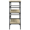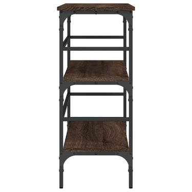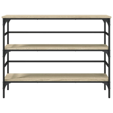 Ajoutez une touche d'élégance à votre entrée, salon ou couloir avec cette table console élégante. Matériau durable : le bois d'ingénierie est d'une qualité exceptionnelle avec une surface lisse et présente également résistance, stabilité et résistance à l'humidité. Fabriqué en bois d’ingénierie, le bout de canapé est facile à nettoyer.Beaucoup d'espace de rangement : la table d'entrée avec plusieurs étagères offre un grand espace de rangement pour garder vos magazines, livres, objets décoratifs et autres objets indispensables au quotidien bien organisés et à portée de main.Pieds réglables : les pieds réglables avec des bouchons en plastique maintiennent la table de couloir en équilibre sur un sol inégal et augmentent sa stabilité.Cadre en métal : le cadre en métal ajoute un style industriel à votre intérieur tout en assurant la durabilité et la stabilité. Attention :Pour éviter qu'il ne soit renversé, ce produit doit être utilisé avec le dispositif de fixation au mur fourni.