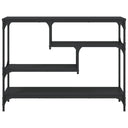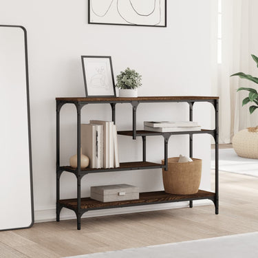 Ajoutez une touche d'élégance à votre entrée, salon ou couloir avec cette table console élégante. Matériau durable : le bois d'ingénierie est d'une qualité exceptionnelle avec une surface lisse et présente également résistance, stabilité et résistance à l'humidité. Fabriqué en bois d’ingénierie, le bout de canapé est facile à nettoyer.Beaucoup d'espace de rangement : la table d'entrée avec plusieurs étagères offre un grand espace de rangement pour garder vos magazines, livres, objets décoratifs et autres objets indispensables au quotidien bien organisés et à portée de main.Pieds réglables : les pieds réglables avec des bouchons en plastique maintiennent la table de couloir en équilibre sur un sol inégal et augmentent sa stabilité.Cadre en métal : le cadre en métal ajoute un style industriel à votre intérieur tout en assurant la durabilité et la stabilité. Attention :Pour éviter qu'il ne soit renversé, ce produit doit être utilisé avec le dispositif de fixation au mur fourni.
