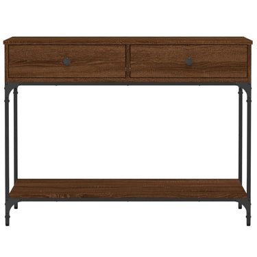 Ajoutez une touche d'élégance à votre entrée, salon ou couloir avec cette table console élégante. Matériau durable : la table d'entrée est fabriquée en bois d'ingénierie. Le bois d'ingénierie est d'une qualité exceptionnelle avec une surface lisse et présente également résistance, stabilité et résistance à l'humidité.Cadre robuste : le cadre en métal assure robustesse et stabilité.Grand espace de rangement : le bout de canapé avec tiroirs et une étagère offre un grand espace de rangement pour garder vos essentiels quotidiens bien organisés et à portée de main.Dessus de table robuste : le dessus de table robuste de couloir est parfait pour placer vos photos encadrées, vos plantes en pot et d'autres objets décoratifs. Attention :Pour éviter qu'il ne soit renversé, ce produit doit être utilisé avec le dispositif de fixation au mur fourni.