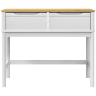 Cette table console classique sera un supplément pratique et décoratif à votre décoration intérieure. Bois de pin massif : le bois de pin massif est un matériau naturel magnifique. Le bois de pin a un grain droit et les nœuds donnent au matériau son aspect caractéristique et rustique. Fabriqué en bois de pin massif, la table est robuste et stable.Grand espace de rangement : cette table d'entrée pratique dispose de 2 tiroirs, offrant suffisamment d'espace pour ranger vos livres, boîtes de rangement, décorations, etc.Fonction d'affichage : vous pouvez également placer vos photos, décorations ou fleurs préférées sur le dessus de la table d'appoint pour enrichir votre espace de vie.Pieds en bois : les pieds en bois donnent au produit un aspect naturel et agréable tout en assurant la stabilité. Il peut bien s'intégrer dans n'importe quel décor intérieur. Attention :Pour éviter qu'il ne bascule, ce produit doit être utilisé avec le dispositif de fixation murale (non fourni).