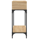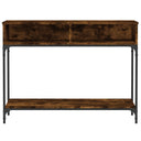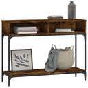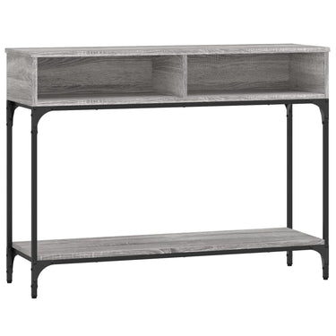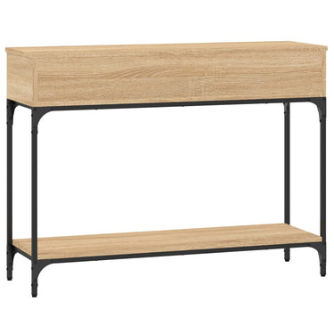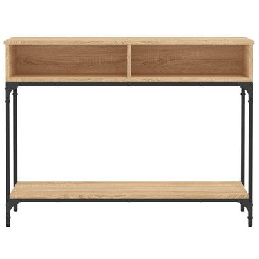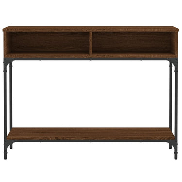 Ajoutez une touche d'élégance à votre entrée, salon ou couloir avec cette table console élégante. Matériau durable : la table d'entrée est fabriquée en bois d'ingénierie. Le bois d'ingénierie est d'une qualité exceptionnelle avec une surface lisse et présente également résistance, stabilité et résistance à l'humidité.Cadre robuste : le cadre en métal assure robustesse et stabilité.Grand espace de rangement : le bout de canapé avec compartiments et une étagère offre un grand espace de rangement pour garder vos essentiels quotidiens bien organisés et à portée de main.Dessus de table robuste : le dessus de table robuste de couloir est parfait pour placer vos photos encadrées, vos plantes en pot et d'autres objets décoratifs. Attention :Pour éviter qu'il ne soit renversé, ce produit doit être utilisé avec le dispositif de fixation au mur fourni.