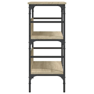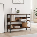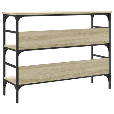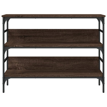 Ajoutez une touche d'élégance à votre entrée, salon ou couloir avec cette table console élégante. Matériau durable : le bois d'ingénierie est d'une qualité exceptionnelle avec une surface lisse et présente également résistance, stabilité et résistance à l'humidité. Fabriqué en bois d’ingénierie, le bout de canapé est facile à nettoyer.Beaucoup d'espace de rangement : la table d'entrée avec plusieurs étagères offre un grand espace de rangement pour garder vos magazines, livres, objets décoratifs et autres objets indispensables au quotidien bien organisés et à portée de main.Pieds réglables : les pieds réglables avec des bouchons en plastique maintiennent la table de couloir en équilibre sur un sol inégal et augmentent sa stabilité.Cadre en métal : le cadre en métal ajoute un style industriel à votre intérieur tout en assurant la durabilité et la stabilité. Attention :Pour éviter qu'il ne soit renversé, ce produit doit être utilisé avec le dispositif de fixation au mur fourni.