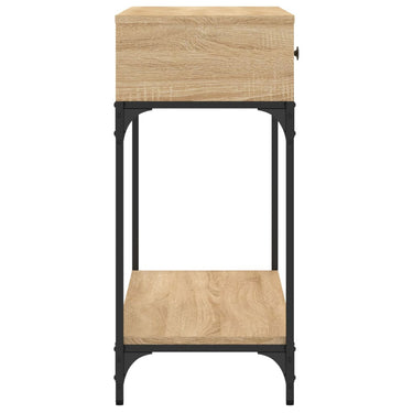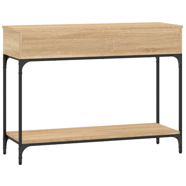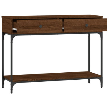Ajoutez une touche d'élégance à votre entrée, salon ou couloir avec cette table console élégante. Matériau durable : la table d'entrée est fabriquée en bois d'ingénierie. Le bois d'ingénierie est d'une qualité exceptionnelle avec une surface lisse et présente également résistance, stabilité et résistance à l'humidité.Cadre robuste : le cadre en métal assure robustesse et stabilité.Grand espace de rangement : le bout de canapé avec tiroirs et une étagère offre un grand espace de rangement pour garder vos essentiels quotidiens bien organisés et à portée de main.Dessus de table robuste : le dessus de table robuste de couloir est parfait pour placer vos photos encadrées, vos plantes en pot et d'autres objets décoratifs. Attention :Pour éviter qu'il ne soit renversé, ce produit doit être utilisé avec le dispositif de fixation au mur fourni.