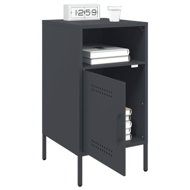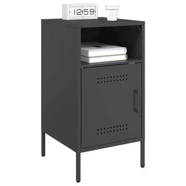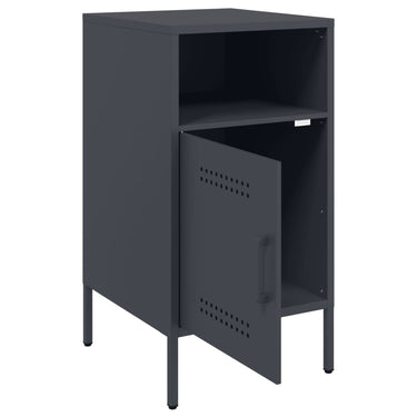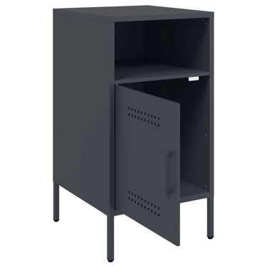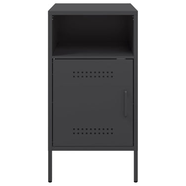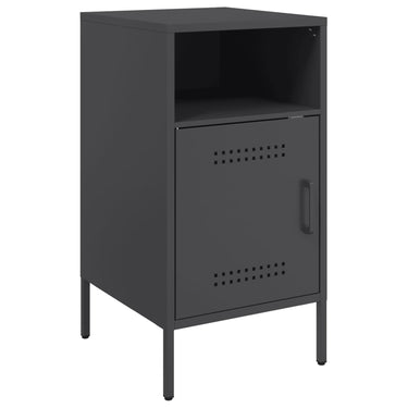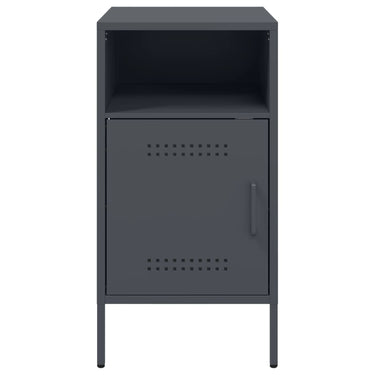 Cette table de chevet robuste de style industriel constitue un supplément intemporel à votre salon ou à votre chambre à coucher. Matériau stable : le cadre de l’armoire est en acier laminé à froid. L’acier laminé à froid est une sorte d’acier à faible teneur en carbone produit par une méthode de « laminage à froid » et traité à des températures ambiantes proches de la normale. L’acier laminé à froid a une surface plus lisse, une plus grande résistance et une plus grande précision.Grand espace de rangement : cette table de chevet offre un grand espace de rangement pour garder vos magazines, livres, DVD, télécommandes et autres petits objets bien organisés et à portée de main.Pieds à vis réglables : cette armoire latérale est équipée de quatre pieds à vis réglables pour compenser les sols inégaux et assurer de la stabilité et de l'équilibre.Porte pratique : la porte permet de maintenir un espace propre et organisé en dissimulant les petits objets essentiels et le désordre qui se trouve derrière.Facile à nettoyer : l'armoire en métal est facile à nettoyer à l'aide d'un chiffon humide et nécessite peu d'entretien. Attention :Pour éviter qu'il ne bascule, ce produit doit être utilisé avec le dispositif de fixation murale fourni.