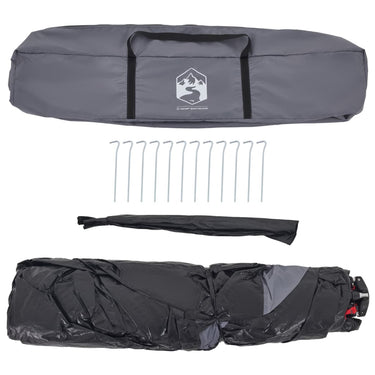 Cette tente de camping à l'aspect moderne vous protège des intempéries et vous offre un espace confortable pour vos aventures en tout lieu. Conception imperméable à l'eau tout autour : cette tente de camping, fabriquée en polyester avec un revêtement PU, est imperméable et résistante au vent. Les coutures étanches empêchent efficacement l'infiltration de l'eau de pluie, tandis que le tapis de sol robuste contribue à maintenir l'intérieur sec et confortable.Système de dégagement rapide : installez la tente sans effort grâce au système de dégagement rapide ! Posez la tente, étendez les poteaux pré-assemblés jusqu’à ce qu’ils s’enclenchent, et le tour est joué !Conception à double porte : la porte en filet offre une excellente ventilation et empêche les insectes d’entrer, tandis que la porte étanche offre une protection contre le vent et la pluie.Accès pratique au cordon électrique : le E-port vous permet de connecter facilement une rallonge à votre tente à partir d'une source d'alimentation externe.Légère et portable : le design pliable et léger vous permet d'emballer facilement la tente et de la ranger dans le sac de transport inclus pour la transporter facilement. Attention :Tenir toutes les flammes et les sources de chaleur loin du tissu de ce produit.