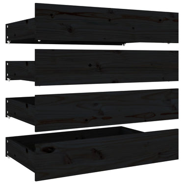Tiroirs de lit 4 pcs Noir Bois de pin massif