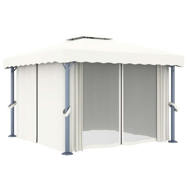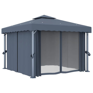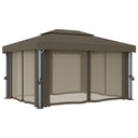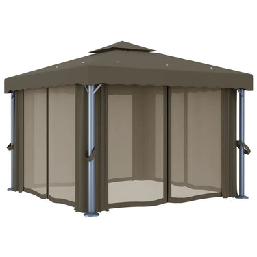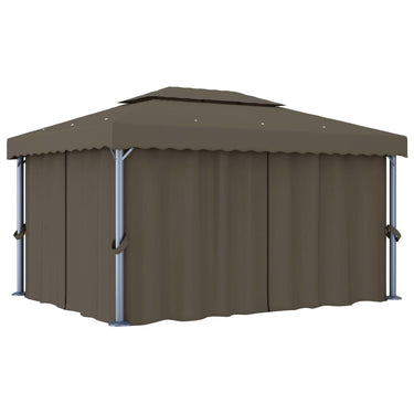 Tonnelle avec rideau et guirlande lumineuse à LED 3x3 m Taupe