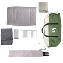 Cette tente de camping à l'aspect moderne vous protège des intempéries et vous offre un espace confortable pour vos aventures en tout lieu. Conception imperméable à l'eau tout autour : cette tente de camping, fabriquée en polyester avec un revêtement PU, est imperméable et résistante au vent. Les coutures étanches empêchent efficacement l'infiltration de l'eau de pluie, tandis que le tapis de sol robuste contribue à maintenir l'intérieur sec et confortable.Facile à monter et à démonter : le montage et le démontage de la tente sont faciles grâce aux poteaux en fibre de verre très flexibles et légers et au système pratique de connexion par anneaux et broches.Double-toit amovible : le double toit amovible peut être fixé au sommet de la tente pour une protection contre les intempéries et plus d’intimité.Bonne ventilation et protection contre les moustiques : les parois en maille offrent non seulement une excellente ventilation, mais aussi une protection efficace contre les insectes, garantissant aux utilisateurs une expérience confortable et sans insectes.Accès facile : la porte à fermeture éclair permet un accès facile. Vous pouvez l’enrouler et la fixer à l’aide des bascules de porte. Elle favorise également la circulation de l’air et fournit beaucoup de lumière naturelle. Attention :Tenir toutes les flammes et les sources de chaleur loin du tissu de ce produit.