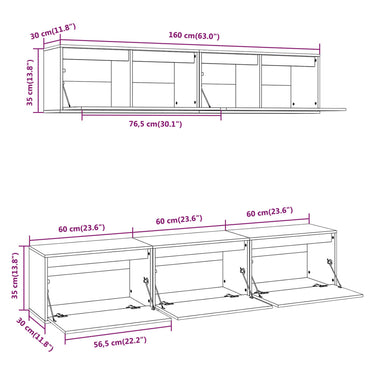 - 3 x meuble TV : 60 x 30 x 35 cm (l x P x H)