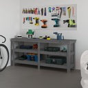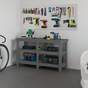 - Voldoende opbergruimte: deze werktafel met schappen biedt veel opbergruimte om je spullen goed georganiseerd en binnen handbereik te houden.