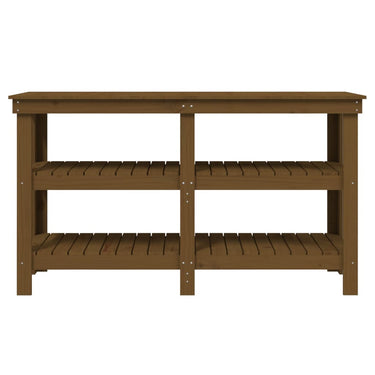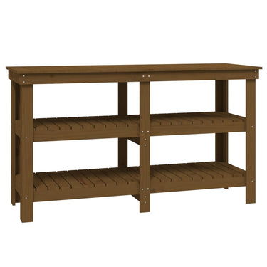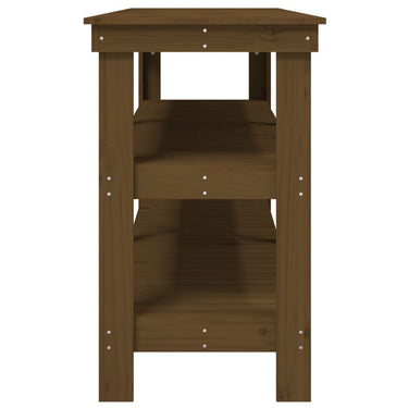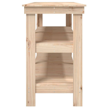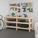 Deze houten werkbank vormt een praktische aanvulling op je woonruimte.