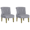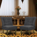 Elke stoel heeft een houten frame dat bedekt is door stof die opgevuld is met comfortabel schuimrubber. De poten zijn gemaakt van massief hout.