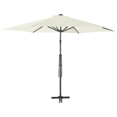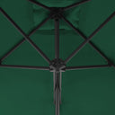 Het parasoldoek is gemaakt van UV-beschermend en anti-vervagend polyester waardoor het je optimaal tegen de zon beschermt en gemakkelijk schoon te maken is. De parasol wordt geleverd met een stevige kruisvoet die bijdraagt aan de stabiliteit. De sterke stalen paal en de 6 duurzame baleinen maken de parasol zeer stabiel en duurzaam. Deze unieke parasol kan 360 graden draaien zodat de hoek van de parasol eenvoudig aan de beweging van de zon kan worden aangepast. Het product is eenvoudig te monteren.