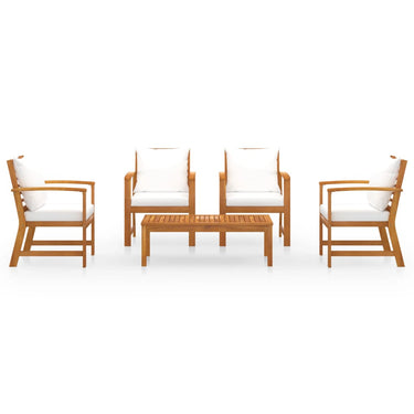 Het bankstel heeft een massief acaciahouten frame waardoor de set sterk, stevig en duurzaam is. De olieafwerking maakt de set geschikt voor gebruik buiten. De afneembare zit- en rugkussens zijn dik gevoerd, voor een geweldig zitcomfort. Een salontafel met een uniek gelat ontwerp is ook inbegrepen. De tafel is perfect voor het binnen handbereik houden van snacks, drinken, enz. Bovendien vallen alle onderdelen op dankzij het modulaire ontwerp waardoor ze naar wens geplaatst kunnen worden.