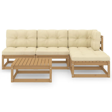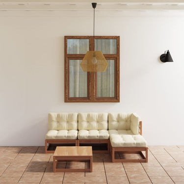 De set is gemaakt van massief grenenhout, waardoor hij stevig en stabiel is. De kussens bieden extra comfort. Je kunt hem combineren met andere modulaire segmenten om zo je eigen persoonlijke loungeset samen te stellen!