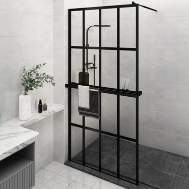 Breng een vleugje esthetiek naar je badkamer met onze moderne inloopdouchewand met een schap!
