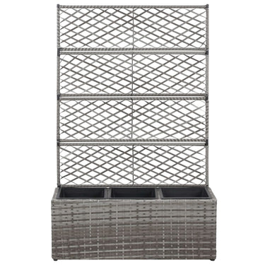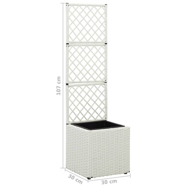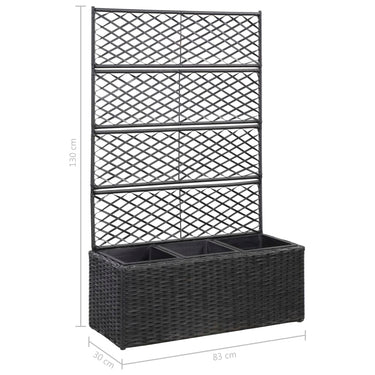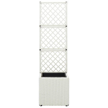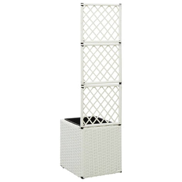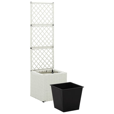 Deze verhoogde poly rattan plantenbak met 2 uitneembare potten heeft een ingebouwd latwerk en voegt een vleugje charme toe aan elke buitenruimte.