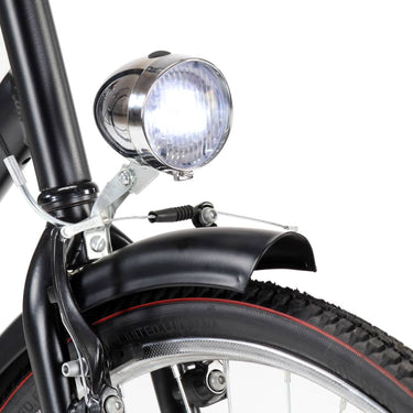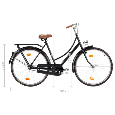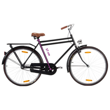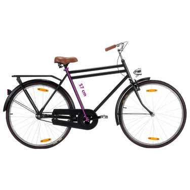 Deze stadsfiets met een 57 cm hoog frame is perfect voor de moderne mens. Het brede zadel en het geometrische stuur zorgen voor een comfortabele, rechte fietspositie. De 28 inch wielen met stalen velgen zorgen voor een snelle rit, of je nu naar werk, school of supermarkt gaat. Het batterij-aangedreven voorlicht biedt veiligheid in het donker.