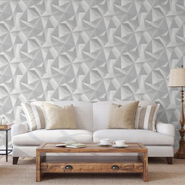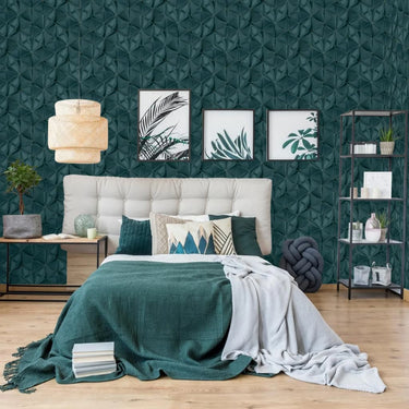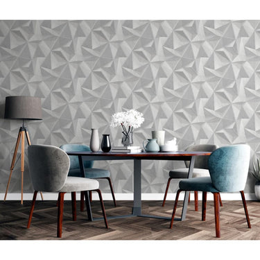 Het duurzame behang heeft geometrisch design met 3D-effect door de verschillende kleurtinten en schaduwen. Het kan droog worden verwijderd zonder je muur te beschadigen.