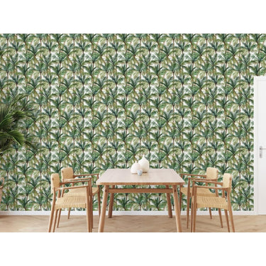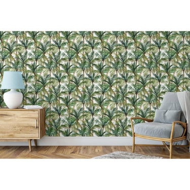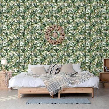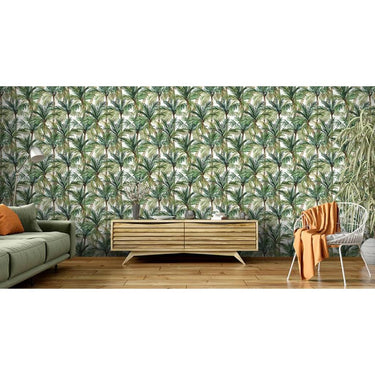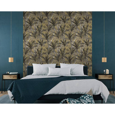 Het duurzame behang heeft een prachtig ontwerp met palmboompatroon in goud en zwart. Het kan droog worden verwijderd zonder je muur te beschadigen.