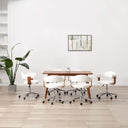 Hij biedt een comfortabele plek voor je gezin om te dineren in de eetkamer of uit te rusten in de woonkamer. De zitting en de rugleuning zijn ergonomisch ontworpen en bekleed met eenvoudig te reinigen kunstleer, waardoor de stoel zeer comfortabel is. Het houten frame en de stalen poten dragen bij aan de duurzaamheid en de esthetische uitstraling. De stoel is 360 graden draaibaar en in hoogte verstelbaar dankzij het gasveermechanisme.