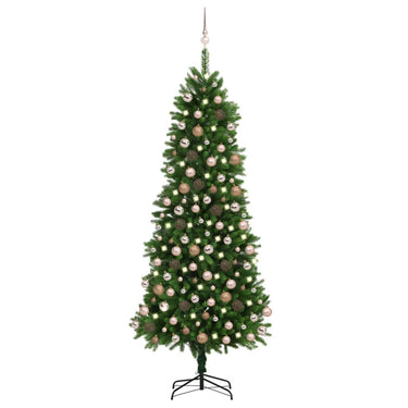 Deze realistische boom heeft levensechte naaldvormige PE takken, die gemaakt zijn met spuitgieten. Hij is licht van gewicht, weerbestendig en duurzaam. De prachtige kerstboom is waterbestendig. De naaldtakken kunnen in elke gewenste richting worden geplaatst. Deze kerstboom kan elk jaar worden gebruikt, waardoor hij een zeer voordelige keuze is in vergelijking met een echte boom. De energiezuinige LED-verlichting brandt prachtig en zorgt voor een gezellige kerstsfeer. Bovendien zal deze kerstboom, versierd met de prachtige piek en ballen, een blikvanger in je huis worden!