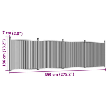 - Eenvoudig te installeren: het privacyhek is zeer eenvoudig op te zetten door de latten erin te plaatsen. Je hebt bovendien de flexibiliteit om hem, afhankelijk van je wensen, verticaal of horizontaal te monteren.