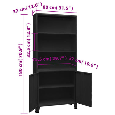 Dankzij de schappen en deuren kan je boeken en documenten in verschillende categorieën organiseren. Dit meubel past perfect in elk huis of kantoor. De stalen poten met kunststof doppen beschermen je vloer tegen krassen. Elke deur heeft een labelhouder en ventilatiegaten die bijdragen aan de industriële uitstraling. De boekenkast is gemaakt van hoogwaardig staal waardoor hij duurzaam en eenvoudig schoon te maken is.