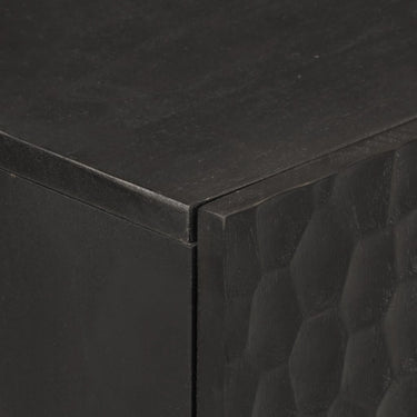 - Massief mangohout: massief mangohout is een sterk, tropisch hardhout waar stevige meubelen van gemaakt worden. De prachtige houtnerven maken elk meubelstuk net even anders dan de rest. De kast is van massief mangohout gemaakt en is duurzaam en stabiel.