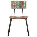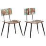 Deze stoelen zijn gemaakt van massief gerecycled hout, wat betekent dat elk meubelstuk uniek en net iets anders dan de rest is. Meubelen die zijn gemaakt van teruggewonnen hout hebben de kenmerken van verschillende houtsoorten, zoals teak, mangohout en acacia. Gerecycled hout is stevig, stabiel, duurzaam en mooi. De gebruikssporen en zichtbare nerfstructuur geven elk meubel zijn eigen geschiedenis en een unieke uitstraling. Deze stoelenset is volledig handgemaakt en elke stap van het proces wordt met de grootste zorg uitgevoerd. De meerkleurige verfafwerking draagt bij aan de spectaculaire retro stijl.