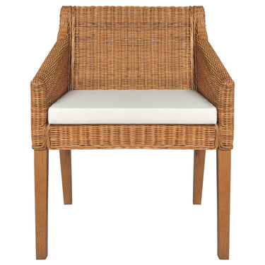 Deze eetkamerstoel van natuurlijk rattan met een dik gevoerd kussen is een geweldige aanvulling op je interieur.