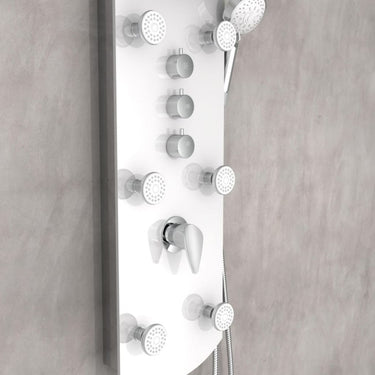 - Opvallend ontwerp: dit douchepaneel heeft 6 massagejets voor je rug, een grote regendouchekop en een handdouche met 3 straalfuncties, voor een weldadige en ontspannende douche-ervaring.