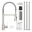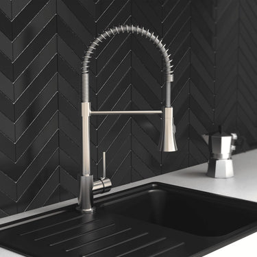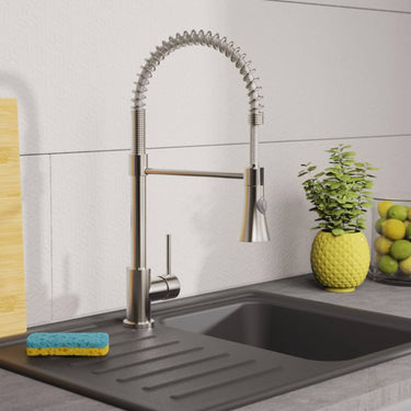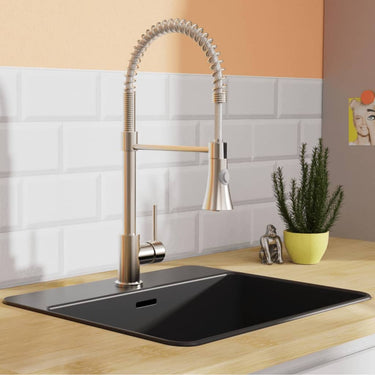 Bovendien is deze kraan dankzij het flexibele, metalen ontwerp van de verbindingsslang, de spiraalveer uitloop, de metalen zijhandgreep, de keramische schijven en de vervangbare en stille 35 mm cartouche geschikt voor de meeste wastafels. Ook heeft de spoelbakmengkraan een koudestartfunctie, die energiebesparend is.