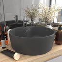 De wasbak is perfect voor dagelijks gebruik en is tevens een blikvanger in je leefruimte. Deze wastafel kan op het blad van je badkamerkast worden geplaatst en kan ook gebruikt worden in cosmetische ruimtes, garages, keukens, enz. Dankzij het trendy en moderne ontwerp past hij in elke interieurstijl en is hij eenvoudig te reinigen. Het matte oppervlak en het luxe ontwerp geven deze wastafel een charmant tintje. Het bassin, voorzien van een overloop, voorkomt dat hij overloopt. Daarnaast heeft de stenen gootsteen een gat voor het plaatsen van een kraan.
