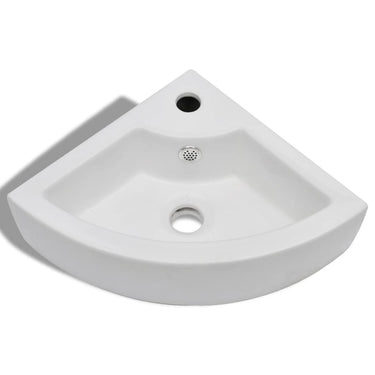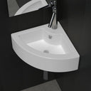 Deze hoekwastafel is gemaakt van keramiek en is een chique en tijdloze aanvulling op elke badkamer, toilet, enz.