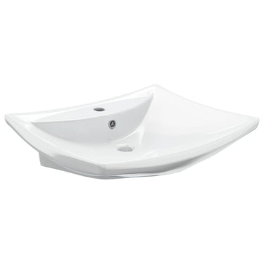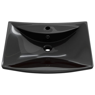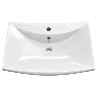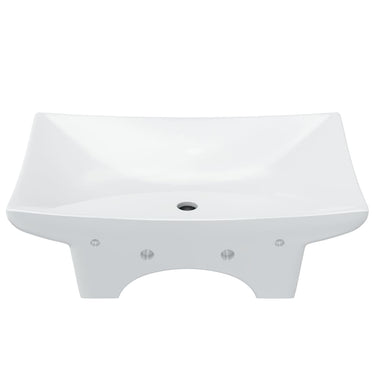 Deze rechthoekige wastafel van hoogwaardig keramiek is een stijlvolle toevoeging aan iedere badkamer en toilet. Zijn hoogglans afwerking geeft hem een modern maar elegant design.