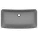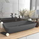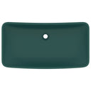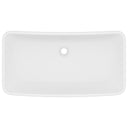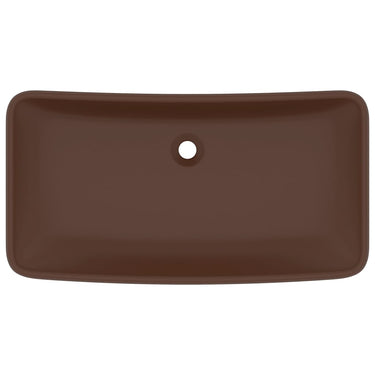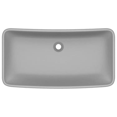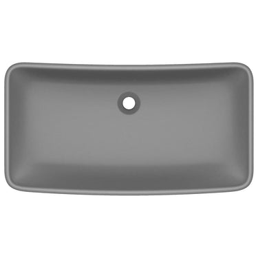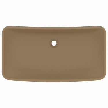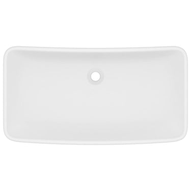 Deze rechthoekige wastafel van hoogwaardig keramiek is een stijlvolle toevoeging aan elke badkamer en toilet. Zijn matte afwerking en het luxe ontwerp geven hem een moderne, maar elegante uitstraling.