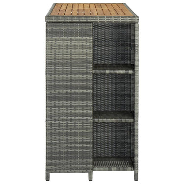 Deze bistrotafel is gemaakt van PE-rattan en heeft een stalen frame, waardoor hij duurzaam en stabiel is. Het stevige tafelblad is gemaakt van massief acaciahout en is perfect om drankjes en snacks op te zetten. Het opbergrek aan de zijkant heeft 3 schappen en biedt extra opbergruimte om je spullen binnen handbereik te houden. Dankzij de lichtgewicht constructie is de eettafel ook nog eens gemakkelijk te verplaatsen.