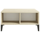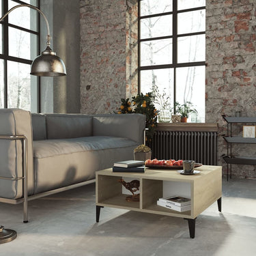 Deze banktafel is gemaakt van bewerkt hout, waardoor hij stevig en duurzaam is. De metalen poten voegen extra stabiliteit toe. Dankzij de 4 vakken biedt de bijzettafel voldoende opbergruimte. Het stevige tafelblad is perfect voor het plaatsen van drankjes, etenswaren en decoratieve voorwerpen. De woonkamertafel is eenvoudig schoon te maken met een vochtige doek.