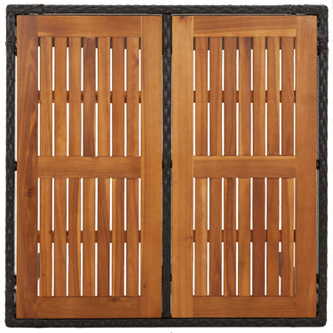 - Materiaal: PE-rattan, gepoedercoat staal en massief acaciahout met een olieafwerking