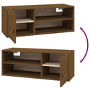 Deze houten wandkast is een decoratieve en praktische toevoeging aan je interieur.