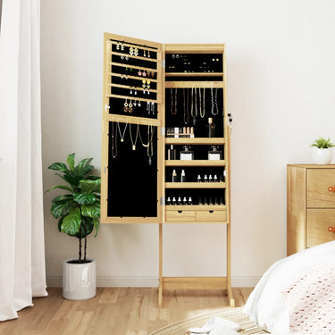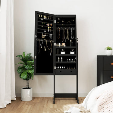 - Vrijstaand ontwerp: deze vrijstaande sieradenopberger kan eenvoudig overal in je slaapkamer, woonkamer of waar je maar wilt worden geplaatst. En de basis met 2 poten houdt deze sieradenspiegel in balans en stabiel, zelfs wanneer hij van binnen volgeladen is.