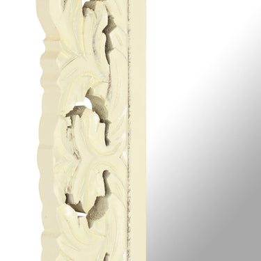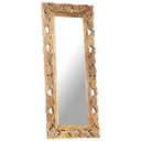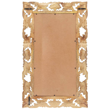 Massief mangohout is een tropisch hardhout. Het heeft de kracht om veel gewicht te dragen en is bestand tegen slijtage. Bovendien zorgen het voortreffelijke vakmanschap en de prachtige houtnerven ervoor dat elke houten spiegel net iets anders is dan de rest. Het met de hand gesneden patroon draagt bij aan de schoonheid.