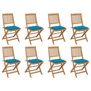 Deze massief acaciahouten inklapbare stoelen met kussens zijn perfect om op te ontspannen en in je tuin of op je terras van de zon te genieten.
