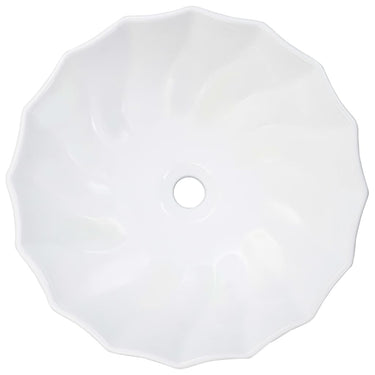 Deze ronde wastafel met bloemontwerp is gemaakt van keramiek en is een chique en tijdloze aanvulling op elke badkamer, toilet, enz.