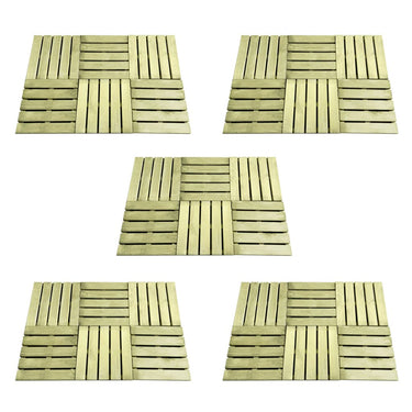 De terrastegels zijn gemaakt van geïmpregneerd grenenhout dat slijtvast en weer- en rotbestendig is. De prachtige houtnerven voegen een rustieke charme toe en maken elke tegel uniek. Levering bevat 12 terrastegels