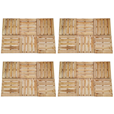 Leg een mooie houten vloer in je tuin, op je terras of naast je zwembad met onze 12-delige set houten terrastegels.