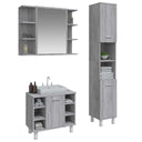 Deze stijlvolle meubelset, bestaande uit 1 hoge kast, 1 wastafelkast en 1 spiegelkast, heeft een prachtige, nette uitstraling en creëert extra opbergruimte in je badkamer.